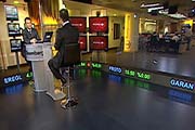 Bloomberg HT'nin stüdyosunda borsa verileri ve animasyonlar led üzerinde 3 boyutlu Grafitek uygulaması ile gösteriliyor.